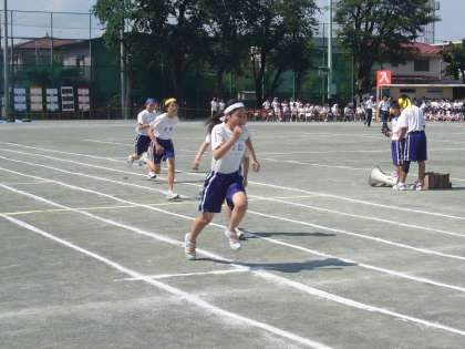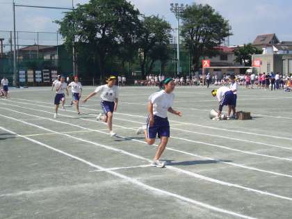 開会式に続いて2,1,3年生の徒競走(100m)です。どの生徒も真剣そのものの顔つきでゴールに向かって全力疾走していました。