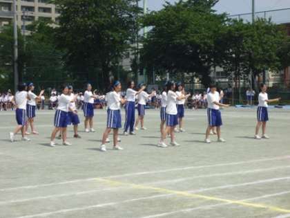 女子によるダンスは、2年生の時の移動教室の夜のレクリエーションでクラスの出し物として行ったものを、少しずつつなぎ合わせて学年のダンスにしたものです。見ていて微笑ましくなるようなかわいくて楽しいダンスでした。