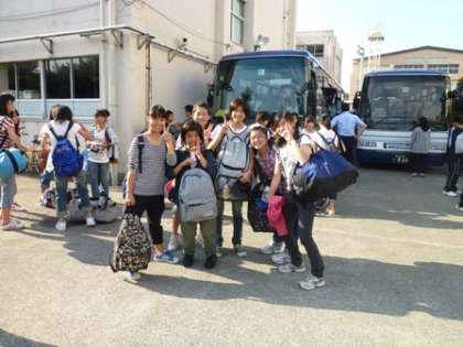 写真は、出発前の様子です。みんなの笑顔がはじけていますね。