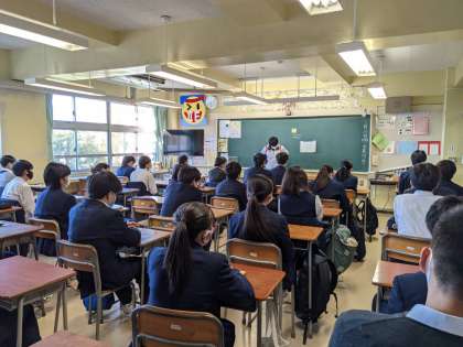 Zoomによる実施も可能ですが、「話をしっかりと聞いてほしい」という趣旨から、本校では放送による形式で実施しています。本日も生徒会や学級委員長の話を真剣に聞いている姿がとて立派でした。