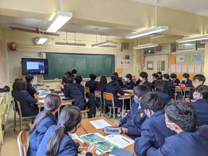 科学コミュケーター宗像様、高橋様を講師に招き、SDGsに関する授業を行っていただきました。zoomでの実施になりましたが、意欲的に取り組んでいました。また、同日に東京外語大学から徳増様をお招きして、グローバルコミュニケーションについての講演会を行いました。
