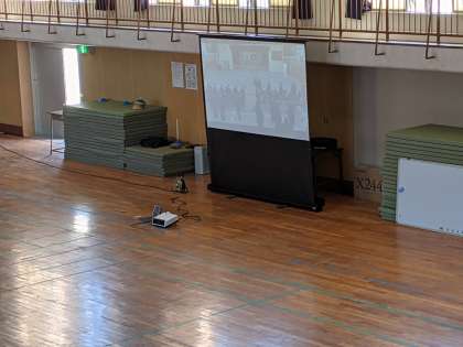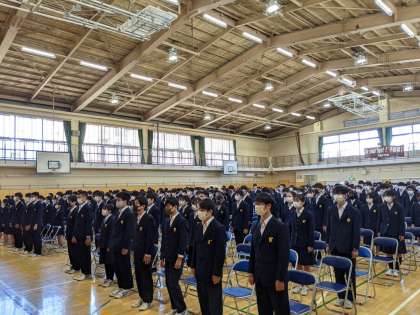予行では保護者の代わりに2年生が参列し、予行練習に程よい緊張感をもたらせてくれました。参列した2年生は、3年生の素晴らしい態度から様々なことを感じ取ってほしいと思います。また、格技室ではパブリックビューイングの予行も行いました。