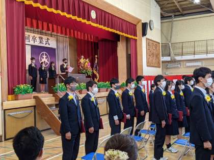 コロナ禍にあり、昨年度に引き続き様々な制限をしなければいけない卒業式になりましたが、その中でも最大限にできることを実施しました。