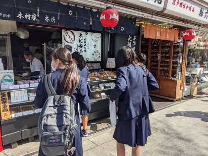 みんなお土産を買ったり、おみくじを引いたりと楽しそうに過ごしています。