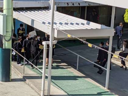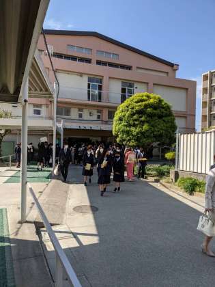 天候にも恵まれ、第74回入学式が行われました。受付でクラス名簿が配布され、一喜一憂していました。