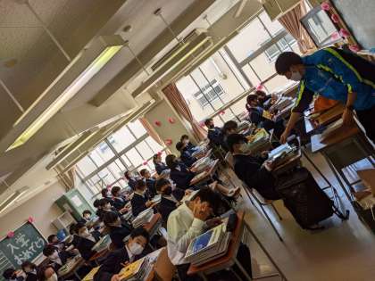 入学式を終え、一年生は今日から通行通りの登校です。まずは大量の教科書配布になります。