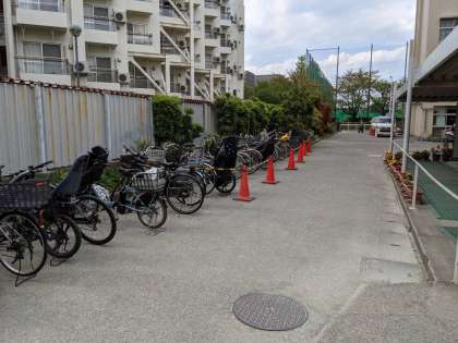 なお、工事に伴い、今まで使用していた駐輪スペースがなくなりました。今後は手狭になりますが、正面玄関脇のカラーコーンに区切られた一区画のみ駐輪可能になります。詳しくは今後発行される学年だよりをご覧ください。