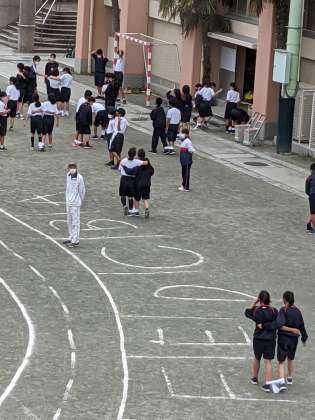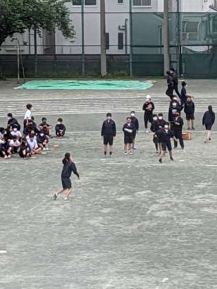 規模の大きい千歳中では、運動会の個人種目練習の時間を時間割に組み込んで練習することが難しく、朝の時間を使って確認しています。