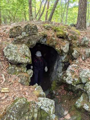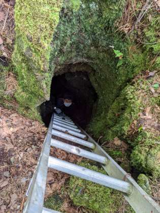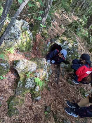 樹海の中のガイドウォークでは、いろいろな溶岩樹型(溶岩でできた洞窟)をめぐりました。