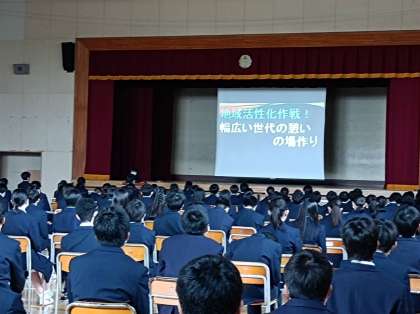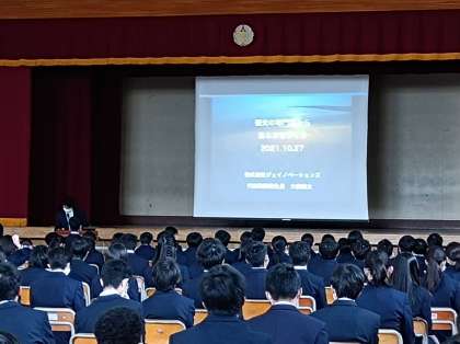 SDGs11(住み続けられるまちづくり)をテーマに生徒がそれぞれでまちづくり計画書を作成しました。今日までに各クラスの代表者を選出し、今日は学年全体で発表会を実施しました。
