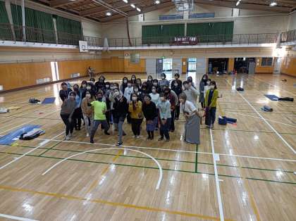 本日、PTA家庭教育学級において、元タカラジェンヌの方を講師にお招きして、YOGA講習会を行いました。
