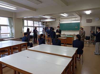 本来であれば税務署で表彰式を行うのですが、コロナ禍ということもあり、千歳中学校に税務署や世田谷区から来賓の方に来ていただき、入賞者5名の表彰をしてもらいました。入賞した5名のみなさん、おめでとうございます。