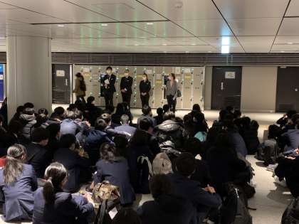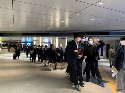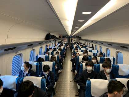 東京駅に集合、出発式を終えて、京都に向けて新幹線で出発しました。
