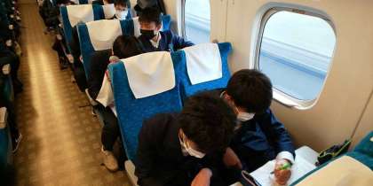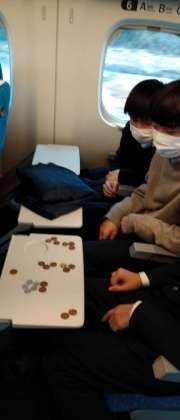 新幹線では、領収書を見て今日のコースを思い出しているようです。また、会計係は精算準備していました。