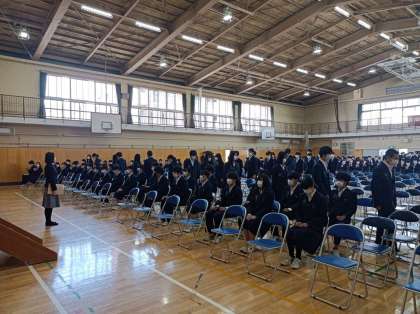 卒業式に向けて、今日は予行練習を行いました。予行練習では、保護者の代わりに2年生が参加。式中の態度や合唱からいろいろなことを感じ取ったと思います。