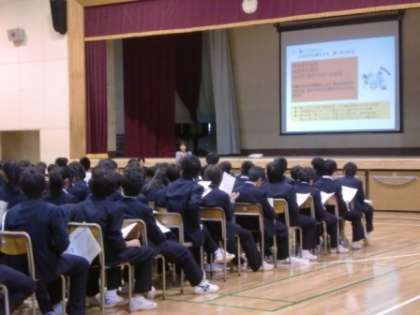本日5時間目に、ハローワークの方をお招きして、「働き方」「正社員とフリーターの違い」「職業を選んでいくには」など、働くということについてお話をしていただきました。