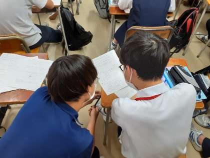 さすがは3年生、テストに向けてお互い教えあってしっかり勉強しています。
