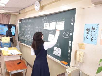 人口密度についてグループで話し合い、まとめた内容を黒板にはって共有します。