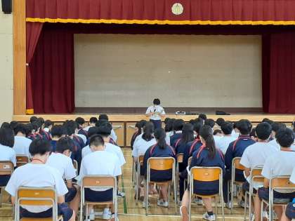 明日からの修学旅行に向けて事前指導が行われ、各係からの連絡がありました。