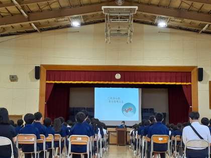 1年生は助産師の野口としのさんから命についてのお話を聞きました。「あなたは唯一無二の大切な存在です。」そして最後に「ここにいてくれてありがとう。」という素敵なメッセージをいただきました。
