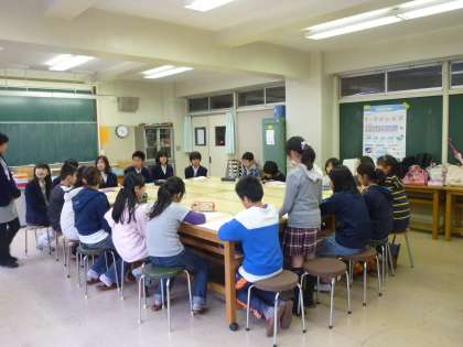 12/14(水)生徒会児童会交流会がありました。この行事は、9年教育の推進を受けて、今年度あらたに計画されたものです。「みのりの学び舎グループ」の、千歳中生徒会役員、祖師谷小・塚戸小・千歳小の児童会役員が一同に介しました。