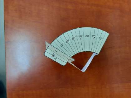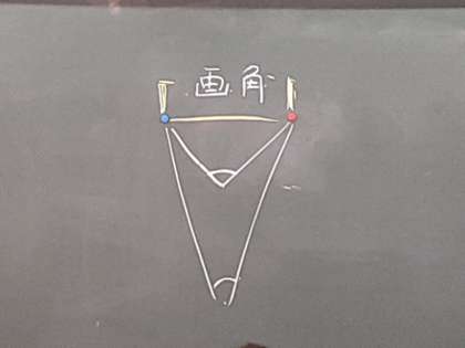 3年生は数学で、同じものを見ていても座っている位置で変わるのでは?と画角を調べています。写真は画角を調べる道具です。