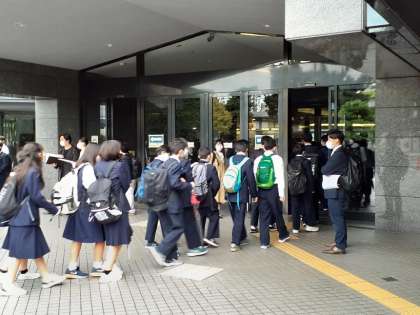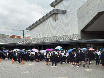 1年生が集合し、入場しました。この後1年生は発声練習を行います。