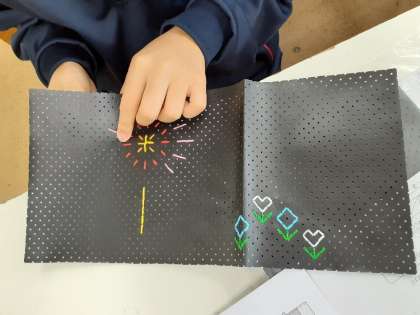 本のサイズを選び、自分でデザインした絵を刺繍します。個性豊かな素敵なブックカバーが出来上がりそうです。