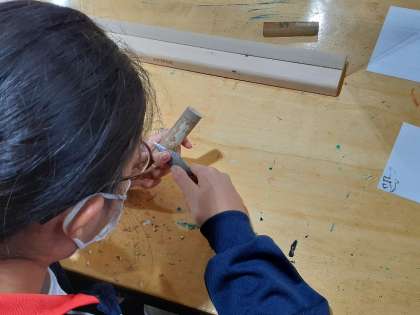 自分で木の皮を削ります。