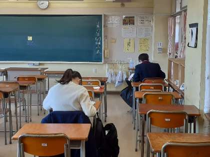 朝7時半すぎから教室で勉強してます。さすが3年生ですね。