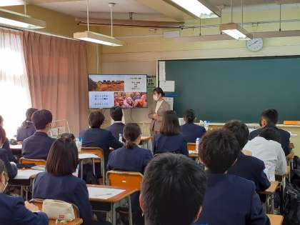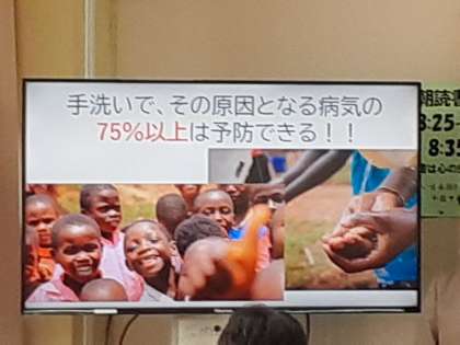 今日の委員会活動の中で、保健給食委員会の生徒たちは、東京サラヤ株式会社の方に来ていただいて手洗いについての講演を聴きました。