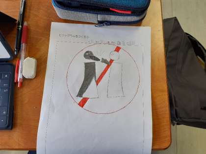 自分で伝えたいことを決めて、それをピクトグラムで表現してます。何を伝えたいかわかりますか?