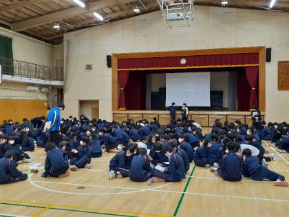 3時間め、全体でエンカウンター。説明を聞いて個人で考えた後、班で話し合いました。