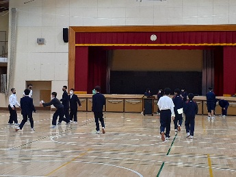今日は雨で昼休みに校庭を使うことができないので、体育館を使いました。今日は1年生だけでした。