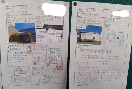 校外学習で見学するところを事前に調べたものです。どれも力作です。