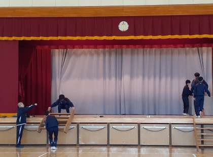 6校時に子供のための文化芸術鑑賞教室で、和太鼓を鑑賞ました。会場準備を2年生が手伝ってくれました。