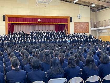 歌い終わった後、1.2年生から3年生へメッセージが送られ、3年生からは1.2年生へメッセージが送られました。