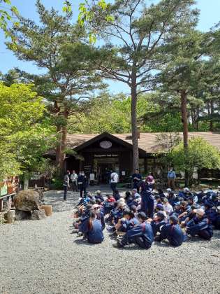 河口湖フィールドセンターに到着しました。ここから、ガイドウォークとバードコール作りに分かれます。