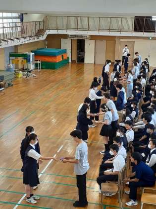 サプライズで、クラスのみんなから一人一人にメッセージカードを送りました。