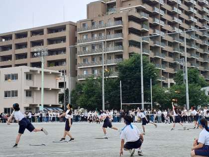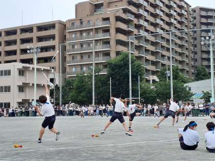 ジャベリックスロー。遠くへ飛ばそうと勢いを着けて投げます。