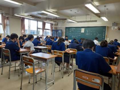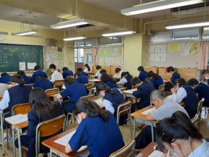 1年生は初めての定期考査。緊張しながら、真剣に受けています。