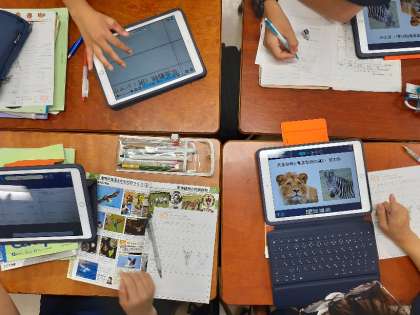 肉食動物と草食動物の違いをグループで話し合い、意見をまとめて発表します。