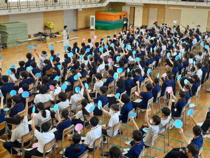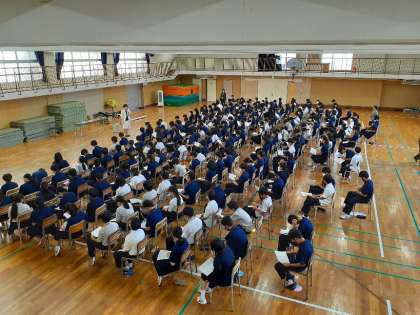 1年生は講師の方に来ていただき、挨拶の大切さやルールとマナーについてなどお話を伺いました。