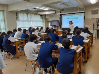 千歳ゼミがどの学年もスタートしています。2年生では、ユニクロの方に来ていただき、服の力プロジェクトについて説明していただきました。