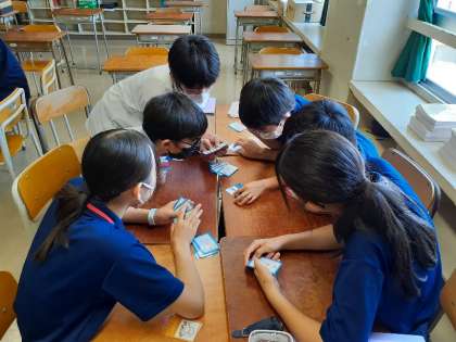 さまざまな問題を持っている手札のカードを使って解決します。みんなで知恵をしぼります。