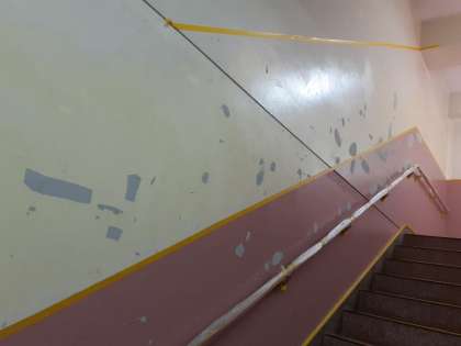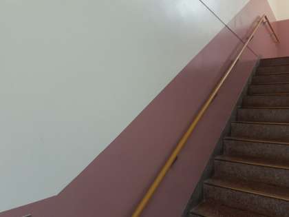 体育館の階段の壁はペンキが剥がれていましたが、主事さんが綺麗に塗ってくれました。
