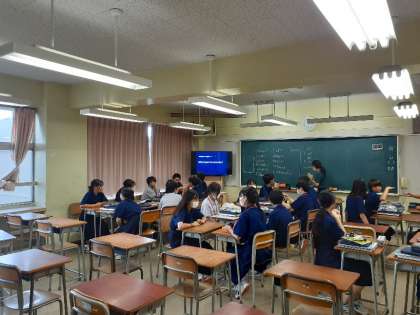 相手を変えながら、自分がやっているスポーツを英語で伝えています。