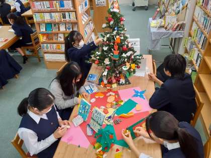 図書委員が図書室にクリスマスの飾り付けをしてくれています。どんな飾り付けになるかな?