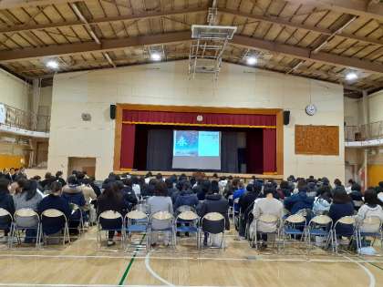 放課後に体育館で新入生保護者説明会が行われました。