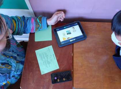 英語のパフォーマンステストです。廊下でALTの先生と行います。